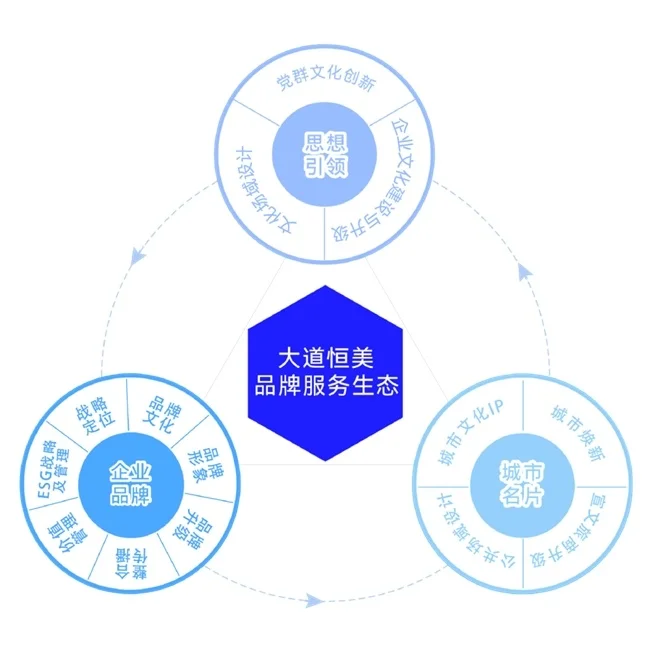 大道恒美,作为全球大品牌战略体系的首创者与中国品牌生态重塑的推动者,始终以“让世界认识中国品牌”为使命。十余年来,我们聚焦中国品牌的高质量生长与全球化崛起,为企业和城市提供全生命周期的品牌系统解决方案。