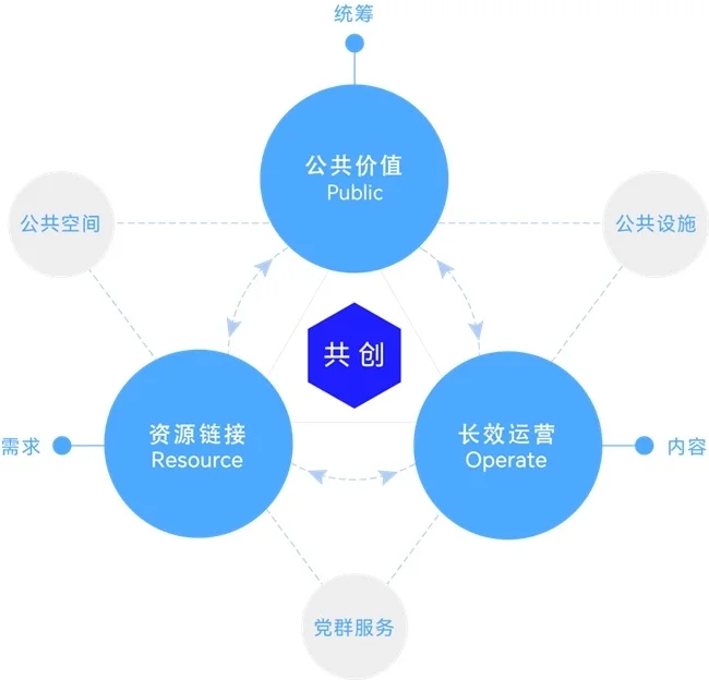 该模型在党建文化创新、城市更新、文旅商融合等领域的应用中,进一步演化为“党建-品牌-产业-民生”四位一体价值生态链。我们首创的党建运营创新「PRO模型」(Public-Resource-Operate),突破传统党建阵地的物理空间桎梏,以社会化运营模式,实现党建空间的活化焕新与长效价值维护。